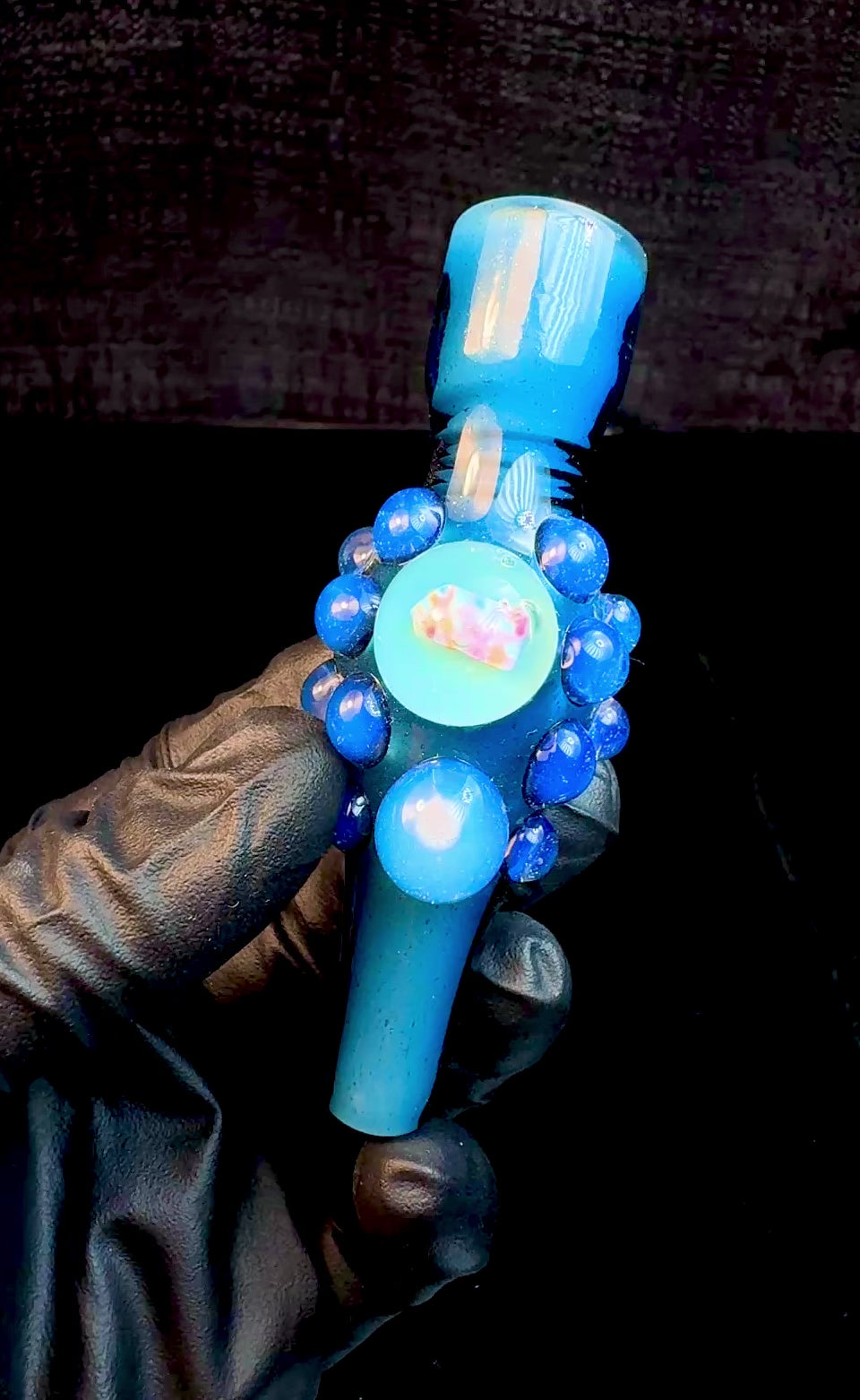 Blue stardust over white opal chillum