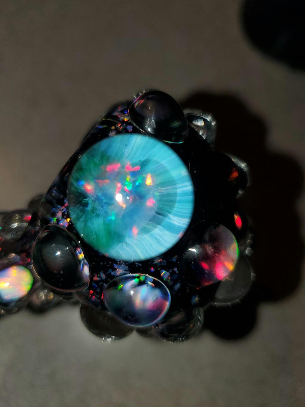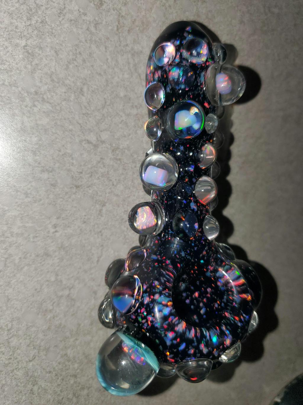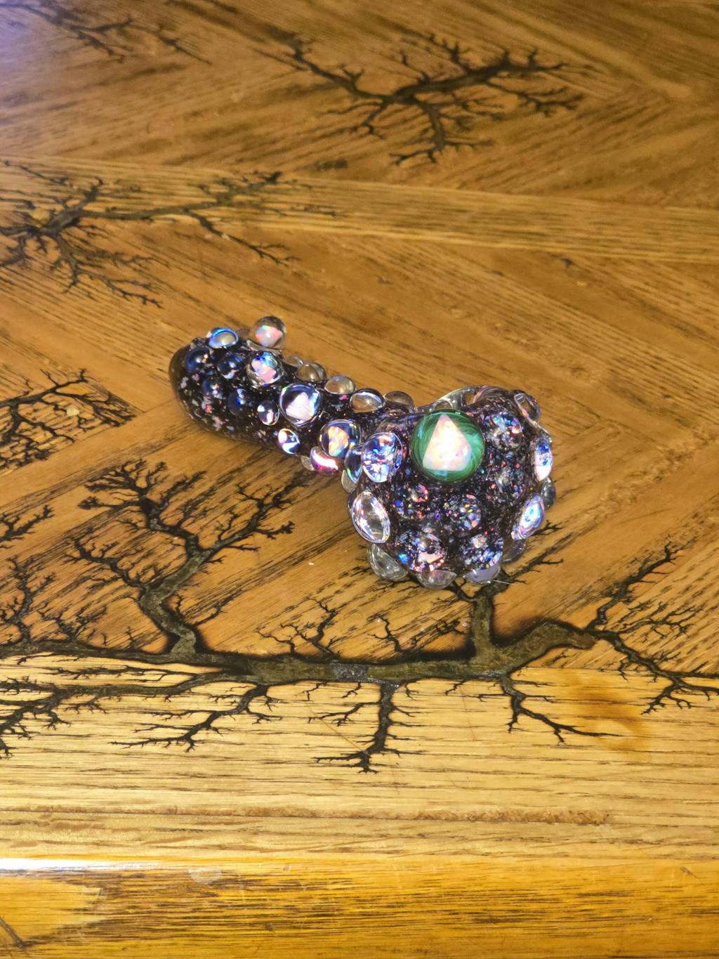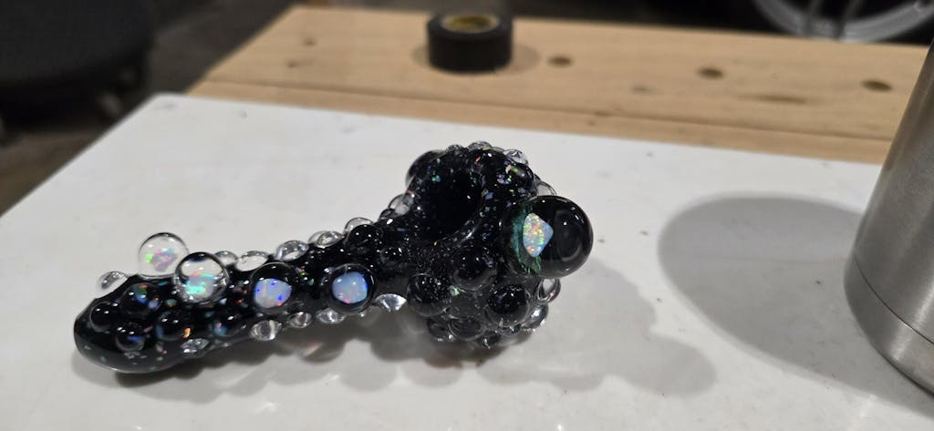 This is my most premium/heady Black Crushed Opal glass pipe made by Harold Ludeman with 5 decked out opals. The tubing used is made in house and is the product of 3 years innovation working on making the most dense/sparkly crushed opal tubing. I am confident you will love this glass pipe!