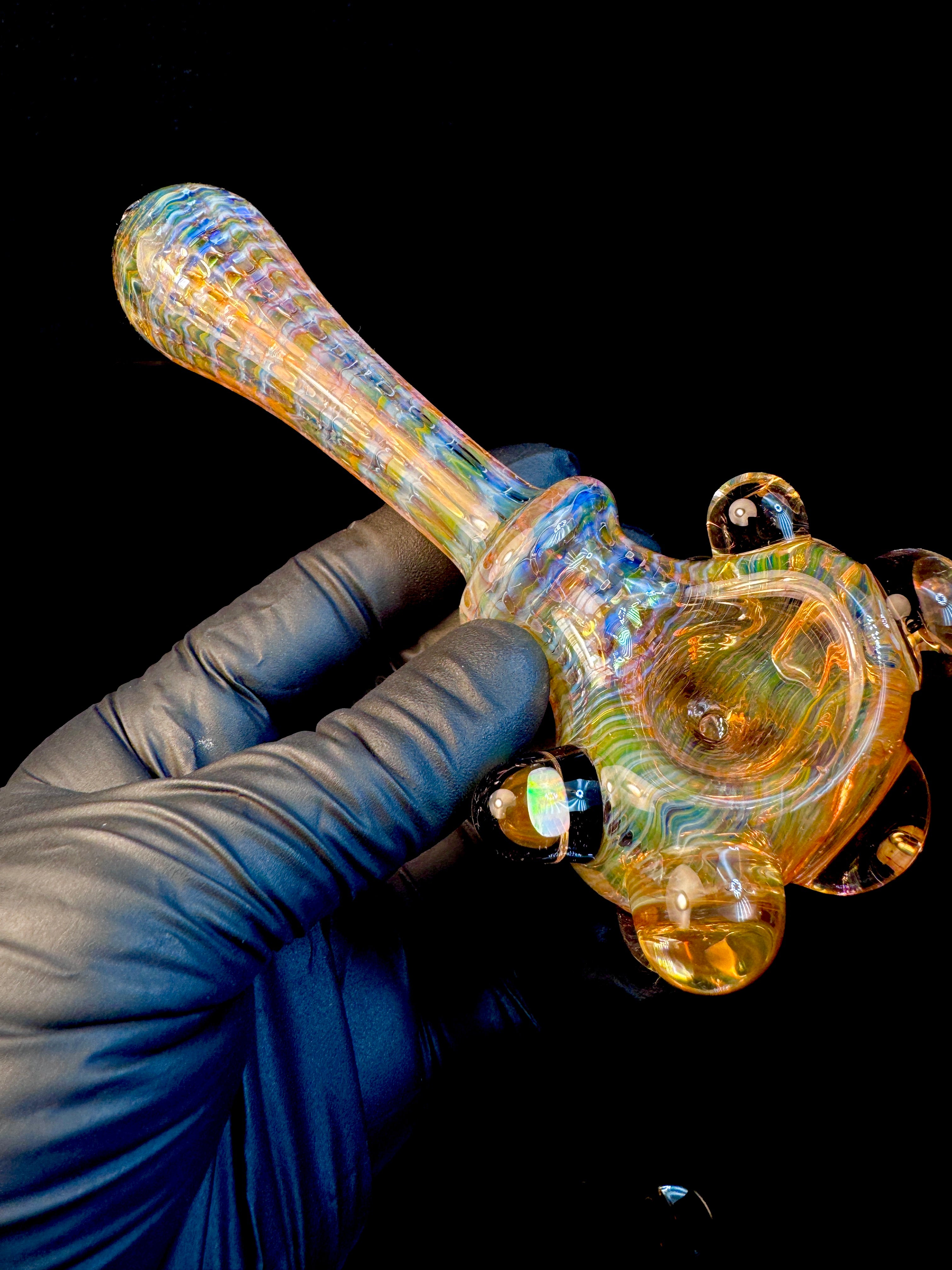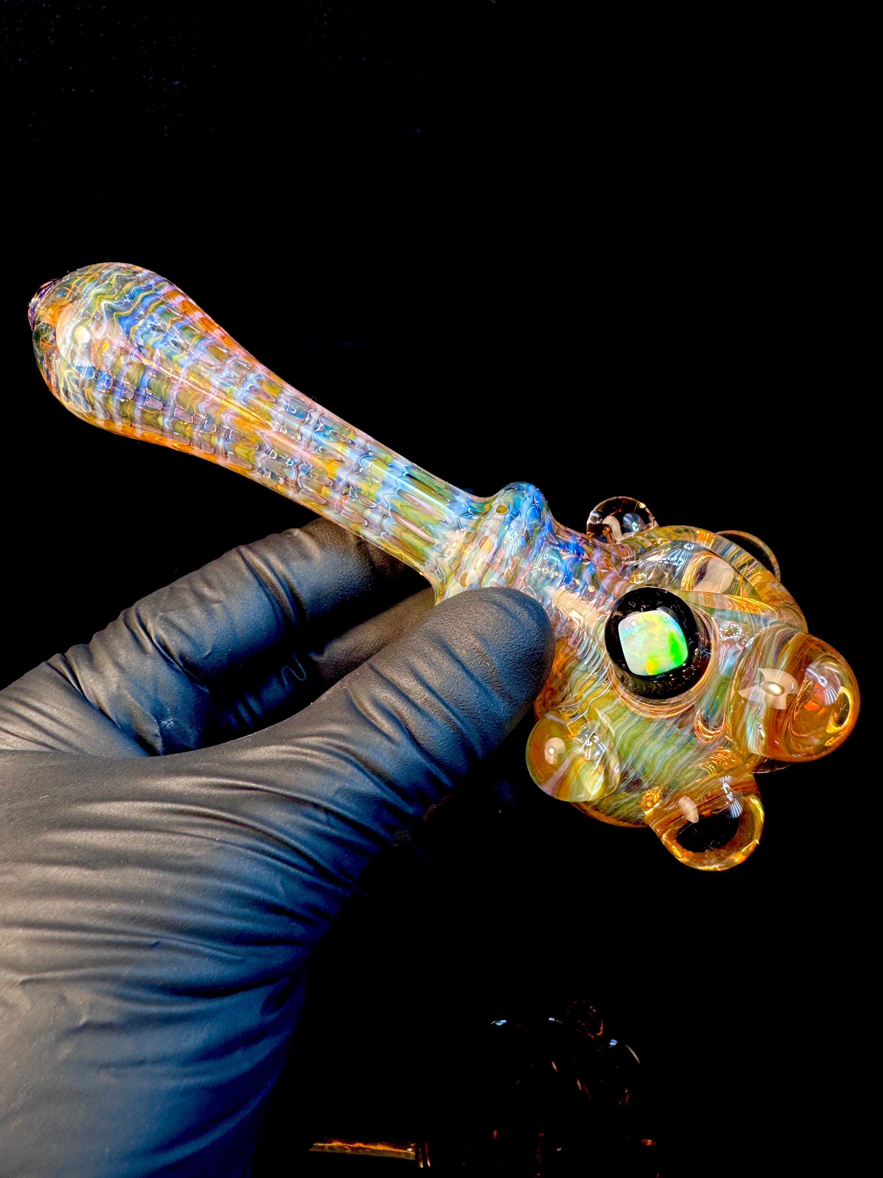 Golden dark web opal pipe